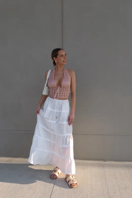 Be the first to review “Chesley Peach Checkered Halter Top”