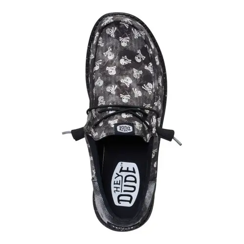 HEYDUDES Wally Funk Skull Print – Black / Black Oyster