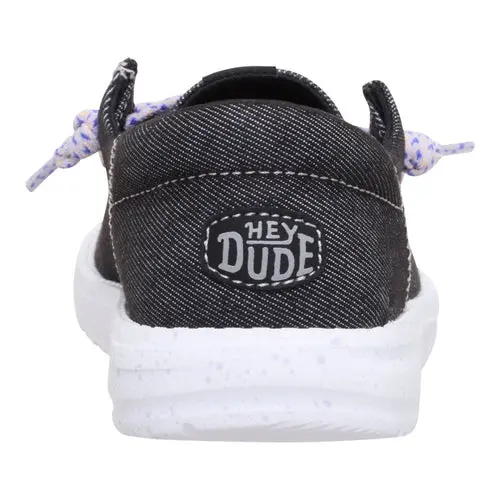 These Wendy shoes for big kids look like feet jeans and feel like little clouds underfoot. Classic denim textile and a speckled sole craft a fun, classy profile. A wide collar and signature HEYDUDE™ elastic laces make them super easy to step into. The best part is they fit snugly without having to tie the laces.