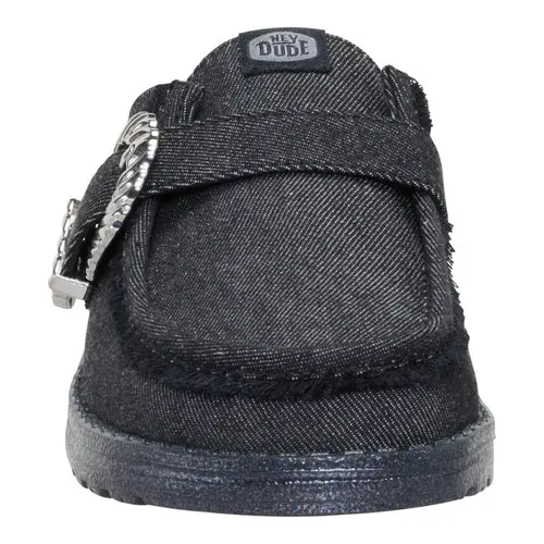 HEYDUDES Wendy Slip Buckle Denim – Black/Black